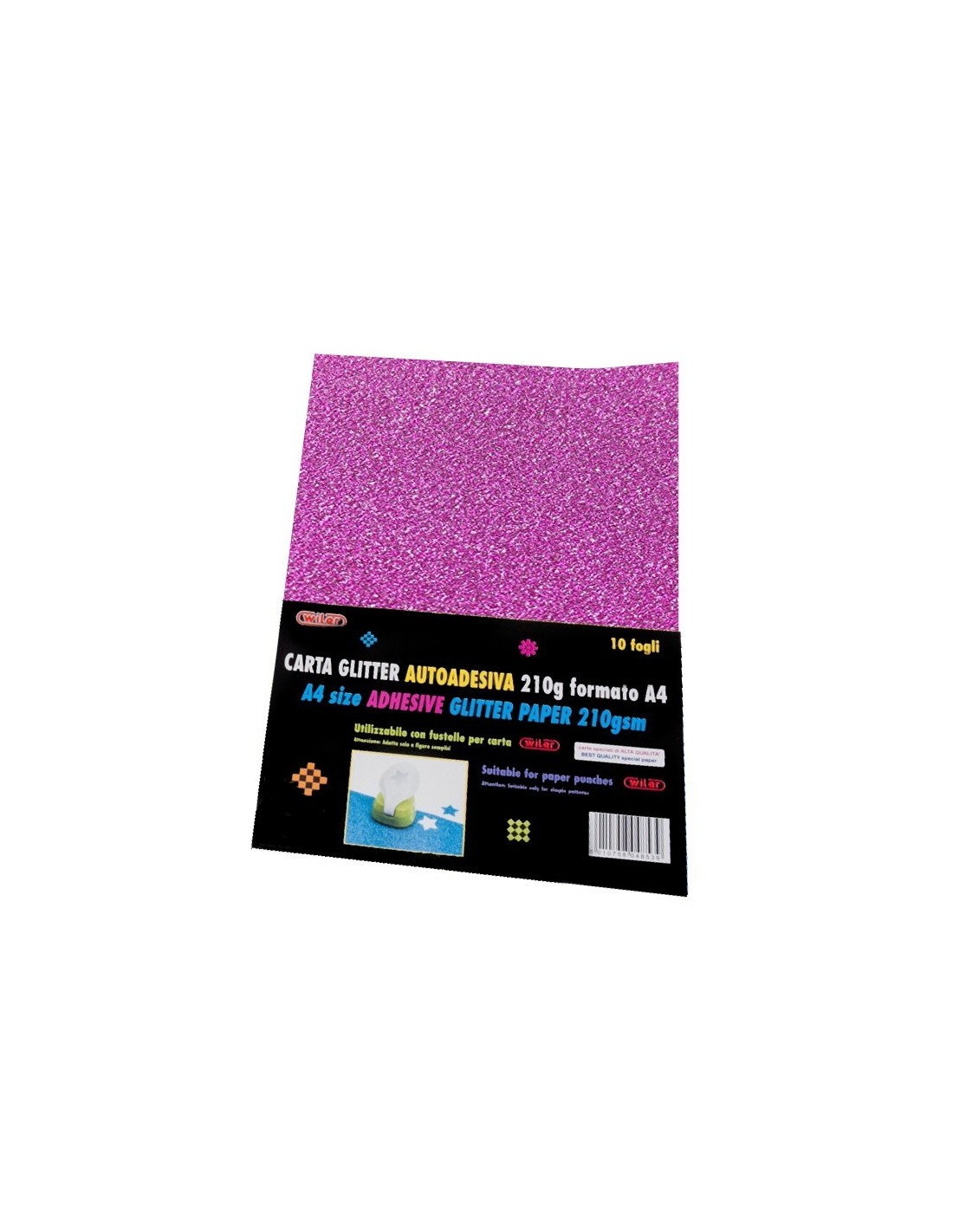 Carta GLITTER adesiva formato A4 colore fuxia 210 GR. confezione 10 pezzi