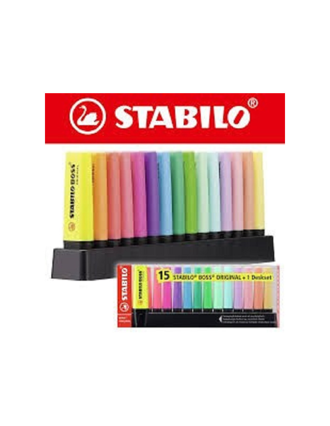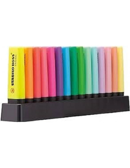 Evidenziatori Stabilo Boss Original con punta scalpello 2mm-5mm scatola da 9 colori fluo'+6 pastello